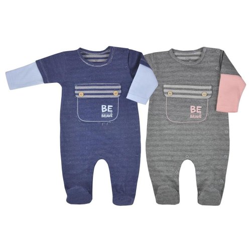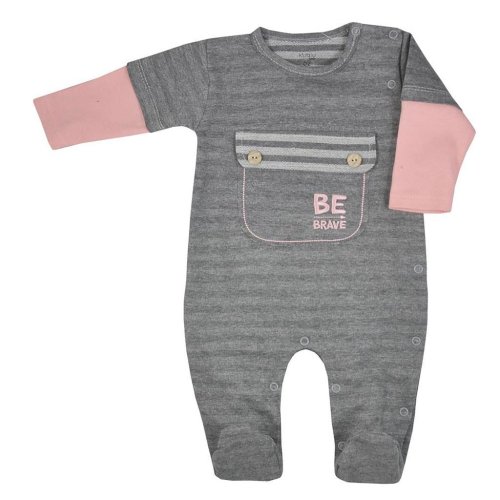 Dojčenský overal Koala BE BRAVE. Overal je zdobený moderným a nápaditým dizajnom, krásnou melírovanou farbou, nápisom BE BRAVE a vreckom s gombíkmi. Praktické bočné zapínanie na cvočky po celej dĺžke, na ramienku a medzi nožičkami veľmi uľahčí obliekanie a prebaľovanie. Zloženie: 100% bavlna.