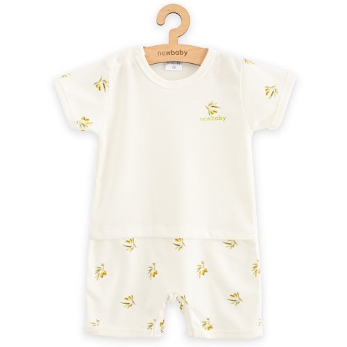 Štýlový letný overal s krátkym rukávom českej značky New Baby Olivy. Zavinovací overálek s krátkym rukávom je celopotlačený krásnymi olivami. Má praktické zaväzovanie na boku na šnúrky, z vnútornej strany na cvoček a medzi nožičkami na cvočky čo uľahčí obliekanie a prebaľovanie. Na nohavičkách sú jemné gumičky, ktoré ale netlačia na nožičkách. Super štýlový letný overal rozžiari každé bábätko