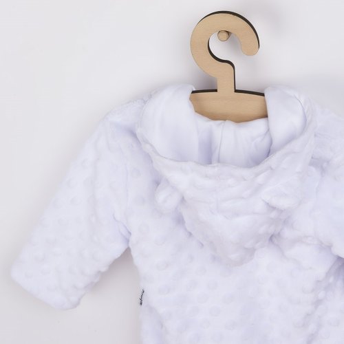 Overálok s kapucňou a uškami Nicol Bubbles pre bábätká. Je vyrobený z Minky látky, ktorá je veľmi hebká na dotyk s malými výstupkami. Overal je podšitý bavlnenou podšívkou. Podšívka je dôležitou súčasťou odevov. Zvyšuje trvanlivosť odevu a rozhoduje o tom, ako sa v oblečení bude dieťa cítiť. Podšívka je hladká, priedušná, príjemná na dotyk a zároveň zvýši komfort nosenia. Bočné zapínanie po celej dĺžke na zips uľahčí obliekanie. Materiál: 100% polyester-minky, podšívka 100% bavlna.