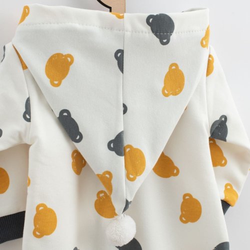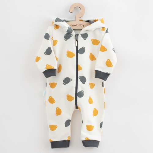 Roztomilý a praktický overal s kapucňou českej značky New Baby Little One. Overal je celopotlačený medvedíkmi, má zapínanie na zips po celej dĺžke a pružné lemy na rukávoch a nohavičkách. Kapucňa je podšitá farebnou podšívkou a je zdobená roztomilou brmbolcom. Overal je vyrobený z pohodlnej teplákoviny. Vhodný na celoročné nosenie. Materiál: 96% bavlna, 4% elastan.
