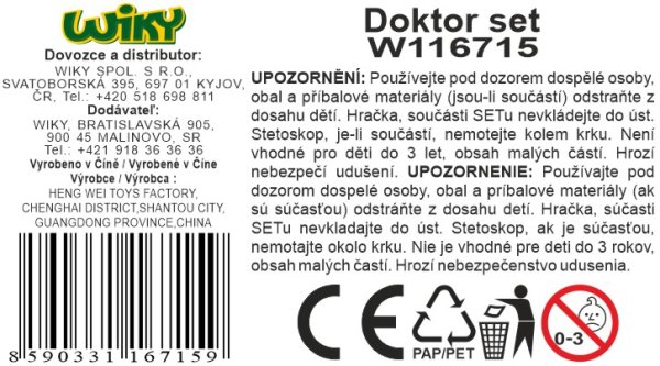 Doktorská sada pre malých pánov doktorov a pani doktorky. Môžete ich tiež použiť ako doplnok ku kostýmu doktora. Sada obsahuje okrem kufríka, stetoskopu a teplomeru ďalších 12 doktorandských nástrojov.