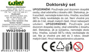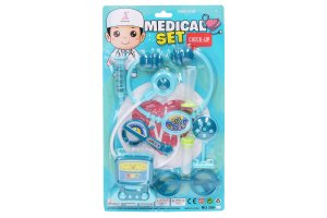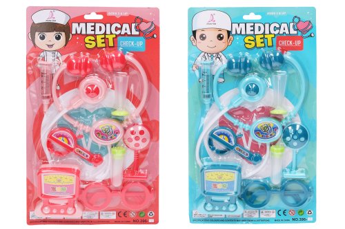 Doktorský set. Obsah balenia - stetoskop, skúmavka, striekačka, ekg, okuliare, a ďalšie. 2 varianty - ružová, modrá.