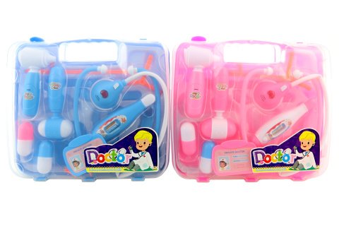 Veľká doktorská sada v kufríku. Kufrík obsahuje cca 13 nástrojov vrátane stetoskopu, ktorý je na batérie - po stlačené tlačidlá svieti srdiečko na stetoskope a vydáva zvuky tlkotu srdca (batérie sú súčasťou balenia). Materiál plast. Rozmery kufríka cca 26x23x5 cm. Vek 3+