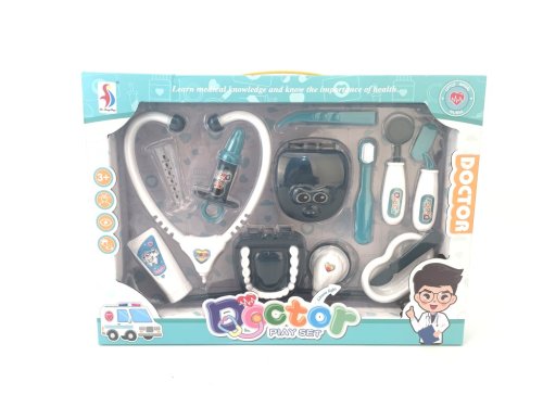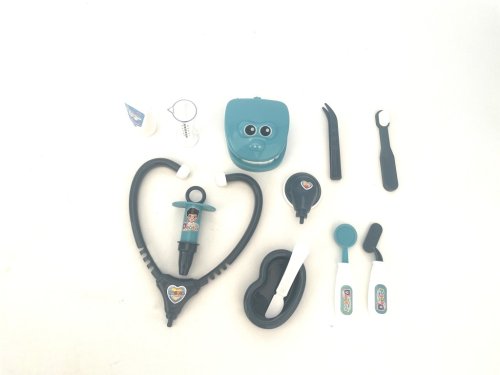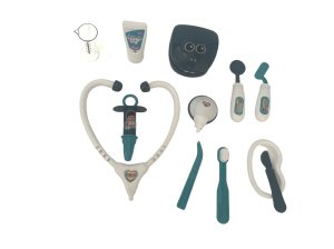 Táto zábavná doktorská sada je určená pre malé deti, ktoré sa chcú stať zubármi a hravo spoznávať svet stomatológie. Súprava obsahuje rôzne nástroje, ktoré sú typické pre prácu zubného lekára, napríklad stetoskop, injekčnú striekačku, zrkadlo, klieštiky, kefku na zuby, model chrupu a ďalšie drobné pomôcky. Všetky tieto prvky sú vyrobené z plastu v kombinácii bielej a modrozelenej či čiernej farby, čo dodáva sade príjemný a priateľský vzhľad. Každý nástroj je navrhnutý tak, aby bol bezpečný a vhodný pre malé deti od troch rokov.