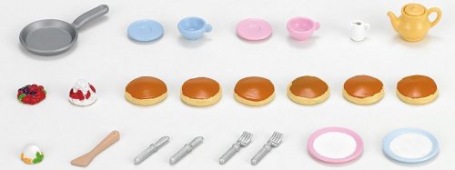Domáca palacinková sada s viac ako 20 dielikmi je ideálna pre všetky domy alebo reštauráciu Sylvanian. Pripravte si voňavé palacinky s lahodnými polevami a horúci ovocný čaj. Herné sady a figúrky Sylvanian Families sú nadčasové a vysoko kvalitné hračky. Hra podnecuje predstavivosť dieťaťa. Sada obsahuje: taniere, príbory, panvicu, obracačku, palacinky, kanvičku na čaj, hrnčeky s podšálkami, kanvičku na mlieko. Vek: 3+