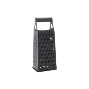 Čierne kuchynské strúhadlo 4stranné s rukoväťou 24 cm. 4stranné strúhadlo s 3 rôznymi hrubosťami a plátkovačom.