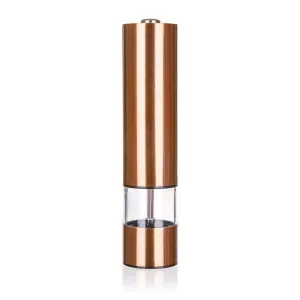 Mlynček na korenie elektrický 22 cm, COPPER, akryl + nerez, MEĎ. výška: 22,5 cm priemer 5 cm 4 x AA (tužkové) batérie, nie sú súčasťou výrobku Elektrický mlynček na korenie COPPER je dodávaný v nerezovom prevedení.