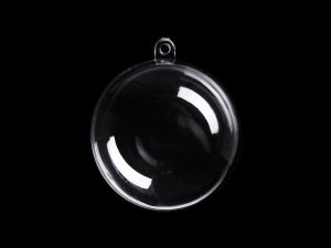 [Priehľadná] plastová guľa sa skladá z dvoch častí, ktoré je možné spojiť a pomocou očka zavesiť ako dekoráciu.