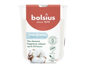 Vonná sviečka v skle. Sklenená nádoba má silné dno a pôsobí veľmi elegantne.