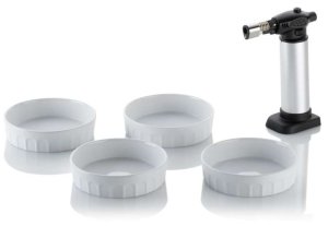 - materiál: porcelán - sada 4 x miska + 1 x flambovacia pištoľ - priemer: 12 cm - výška: 3 cm - žiaruvzdorné do 280 ° C - flambovacia pištoľ: - nastaviteľný plameň - piezo zapaľovanie - bezpečnostná poistka - značka: …