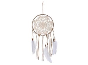 Pre milovníkov boho štýlu si zamilujú macrame lapač snov v krémovej farbe.