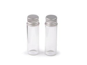 Úzka sklenená fľaštička s kovovým skrutkovacím uzáverom je vhodná na dekoračné aj praktické účely.