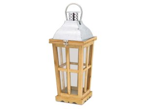 Prírodný dreveno-kovový lampáš – elegantná dekorácia pre sviečku a útulnú atmosféru.