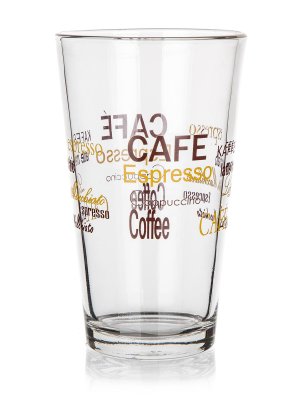 Pohár 480 ml CAFE VALUE. objem: 480 ml Pohár VALUE, s objemom 480 ml, v konickom tvare, je vyrobený z číreho skla s dekorom CAFE.