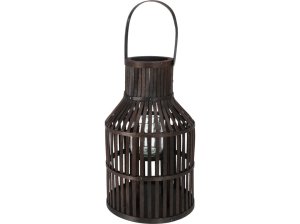 Drevená lampa so závesom na sviečku v tmavo hnedom prevedení - elegantný doplnok pre útulnú a prírodnú atmosféru domova.