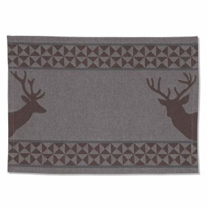 Z krásnej kolekcie kuchynského textilu HENRIK: prestieranie Henrik s decentnou siluetou jeleňa v šedej a mahagónovej hnedej farbe.
