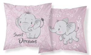 DETEXPOL Obliečka na vankúšik Slon baby ružová 40/40 Obliečka na vankúšik je vyrobená zo 100% bavlny, obliečka má z každej strany iný obrázok viď.