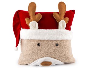 Obliečku na vankúš zdobia plyšové motívy vianočného stromčeka.