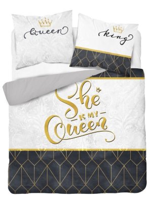 DETEXPOL Francúzske obliečky She is my Queen 220/200, 2x70/80 Materiál: 100% Bavlna Rozmer: 1x 220/200, 2x 70/80 cm Bavlnené obliečky vo francúzskom rozmere 220x200 cm na dvojlôžko