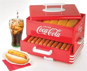 Výrobník Hotdogov COCA COLA SHD80CC Tento výrobník hotdogov pripraví tie najlepšie hotdogy v priebehu niekoľkých minút Je ideálny pre pikniky, grilovanie a ďalšie akcie Retro štýl výrobníka hotdogov Dokáže pripraviť …