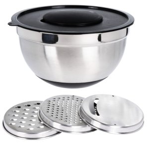- multifunkčná nerezová misa s tromi strúhadlami- misa je vyrobená z nehrdzavejúcej ocele a veko je silikónové- mixovacia misa a strúhadlo v jednom- vďaka čiastočnému otvoru v silikónovom veku môžete mixovať …