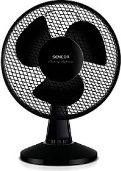 Stolný ventilátor 3 rýchlosti Priemer lopatiek 30 cm Automatická horizontálna rotácia v uhle 90° s možnosťou vypnutia Nastaviteľný uhol sklonu Predná a zadná kovová ochranná mriežka Protišmykové nôžky Ochrana …