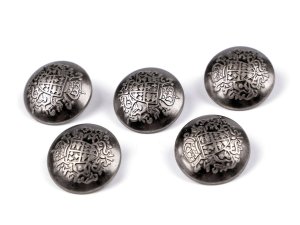 Ploché kovové gombíky so spodným prišívaním ozdobia saká, kabáty, vesty alebo aj na doplnky ako sú kabelky či tašky.
