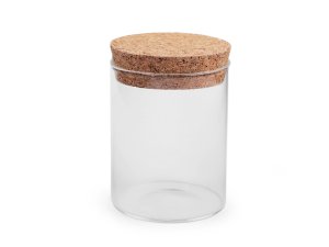 Okrúhla sklenená dóza s rovnými stenami je vďaka korkovému uzáveru nielen veľmi pekná, ale aj praktická.