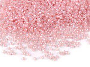 Sklenené korálky rokajl sú jednofarebné, nepriehľadné, s perleťovým efektom.