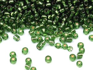Sklenené sekané korálky rokajl so strieborným prieťahom majú nádherný efektný lesk.