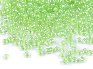 Sklenené korálky rokajl sú jednofarebné, nepriehľadné, s perleťovým efektom.