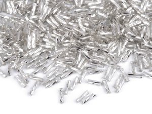 Sklenené sekané korálky rokajl so strieborným prieťahom sa efektne lesknú.