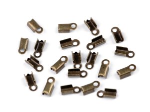 Kovová koncovka je vhodná ako zakončenie šnúrok s priemerom 4 mm. [Pomocou klieští (ideálne s úzkou plochou čeľusťou 070813 alebo 090983) koncovku trochu roztiahneme a vložíme šnúrku.
