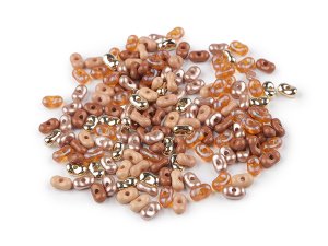 Malé plastové korálky majú zaujímavý tvar arašidov.