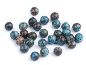 [Syntetické korálky chryzokolu] sú obľúbené predovšetkým šperkári pre svoju zaujímavú kresbu a farbu.