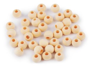 Okrúhle drevené korálky matného vzhľadu sa hodia na výrobu náhrdelníkov a náramkov.