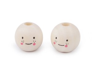 Drevené korálky s maľovanou tvárou sú prírodné, nelakované.