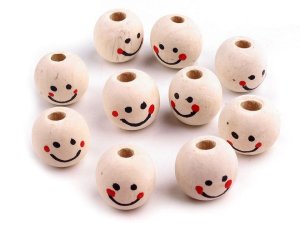 Drevené korálky s maľovanou tvárou snehuliaka.