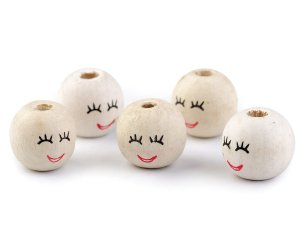 Drevené [korálky s maľovanou] tvárou.