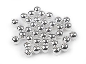 Plastové korálky s metalickou, vysoko lesklou úpravou na povrchu majú tvar guličky.