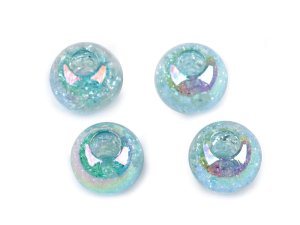 Transparentné korálky s veľkým prievlakom majú vďaka drobných plošiek výrazný lesk.