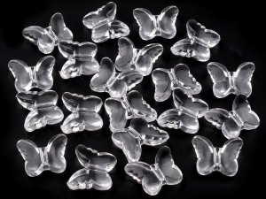 Transparentná plastová korálka v tvare motýľa je vhodná na výrobu dekorácií a bižutérie.MateriályplastVlastnostiRozmery ozdoby: 15 x 18 mmPrievlak: min. 1 mmTransparentné