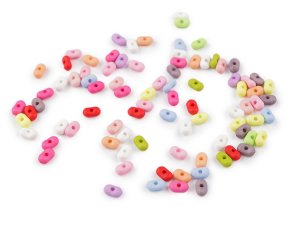 Malé plastové korálky majú zaujímavý tvar arašidov.