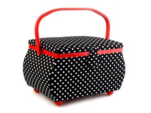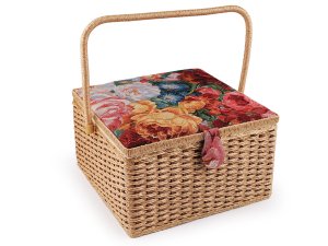 Košík na šijacie potreby s rozmermi 18 x 28 cm, výškou 15 cm ponúkame v rôznych farebných aj vzorových variantoch.