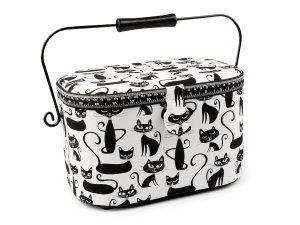 Košík na šijacie potreby s motívom mačiek nadchne nielen krajčírky a pletařky, ale aj ďalších kreatívnych nadšencov.