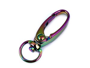 Kovová karabínka je pripevnená na otočnom obrtlíku.
