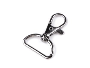 Kovovú otočnú karabínku využijete na výrobu kľúčeniek a pripevnenie popruhov na menšie tašky alebo kabelky.