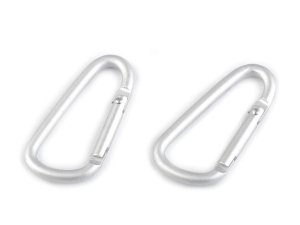 Hliníková karabína je ľahká a vďaka poistke nehrozí, že sa samovoľne otvorí.