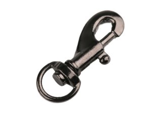 Kovová karabínka je otočná. Využijete ju predovšetkým na výrobu kľúčeniek a popruhov na tašky alebo kabelky.