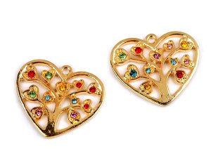 Kovový prívesok v tvare srdca má vo vnútri vkomponovaný strom života.